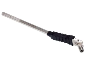 Przeciągacz do zaworów kół samochodowych to solidne narzędzie wykonane ze stali chromowo-wanadowej CrV, która gwarantuje odporność na korozję, utlenianie i ścieranie. Gumowa nakładka skutecznie chroni felgę aluminiową przed zarysowaniem, a blokada kulowa unieruchamia końcówkę podczas nakręcania na zawór.