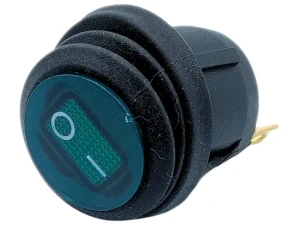 Włącznik kołyskowy 12V ON-OFF, bistabilny, podświetlany, okrągły 2-pozycyjny w kolorze zielonym - idealne rozwiązanie dla Twoich potrzeb!