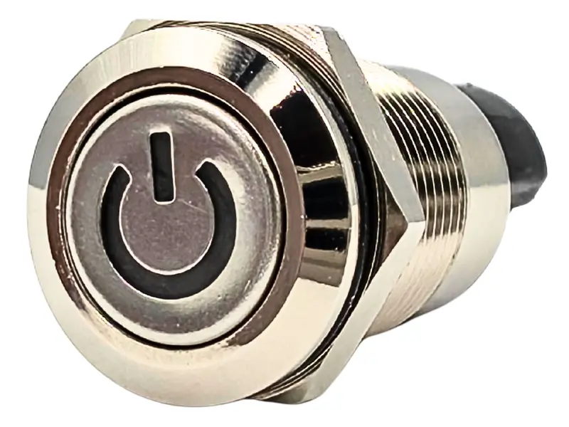 Ten model przycisku charakteryzuje się funkcją bistabilną – działa jak klasyczny przełącznik (włącza i pozostaje włączony do kolejnego naciśnięcia), co czyni go idealnym do sterowania zasilaniem.