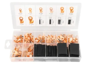 Zestaw profesjonalnych konektorów oczkowych miedzianych z termokurczką – dla precyzyjnych połączeń